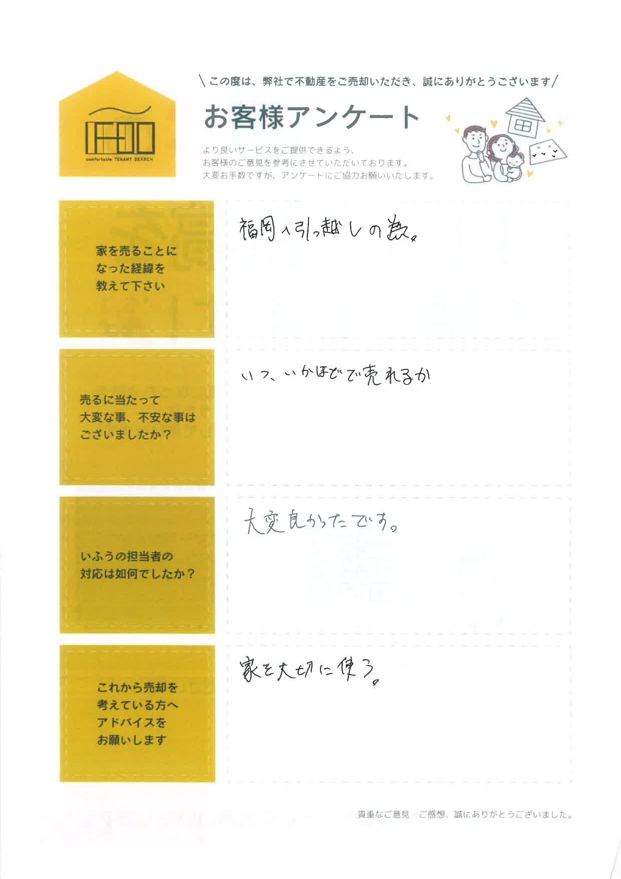 当社での不動産の販売、誠にありがとうございました。